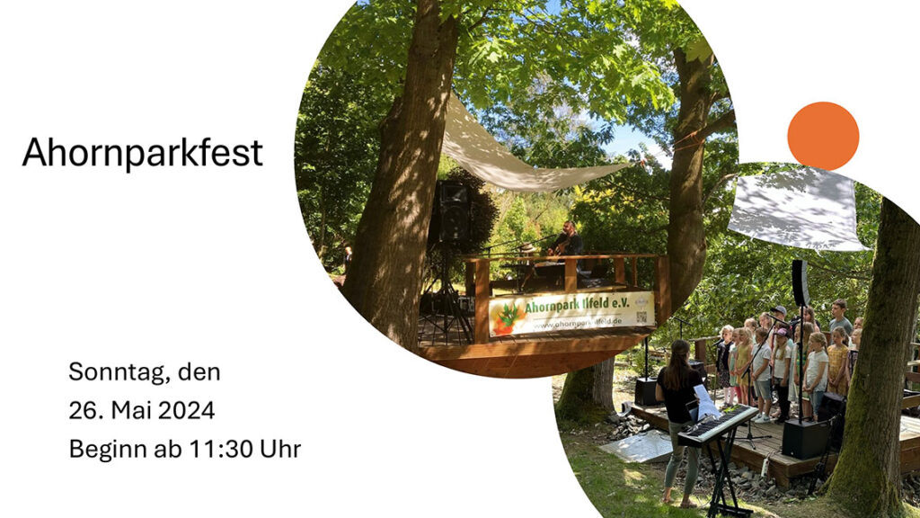 Am 26. Mai ist es wieder soweit, im Ahornpark Ilfeld feiern wir unser alljährliches Frühsommerfest. Jung und Alt, Klein und Groß aus Stadt und Land, Familien mit „Kind und Kegel“, Musikfreunde, Naturliebhaber, Ahornverrückte und Neugierige, sie alle sind eingeladen, nach Ilfeld zu kommen. Wir beginnen um 11:30 Uhr und schönes Wetter ist bestellt.