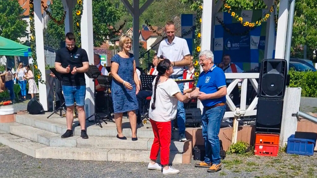 Zum 2. Mal feierte die Ortschaft Ilfeld ihr Maibaumfest zusammen mit der WBG Südharz und weil es im letzten Jahr so schön war, hat die WBG Südharz in diesem Jahr auch ihre Mieter aus dem Ortsteil Niedersachswerfen persönlich mit nach Ilfeld eingeladen.
